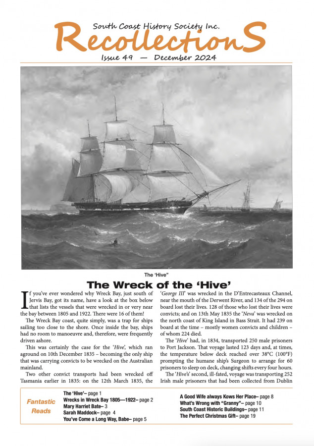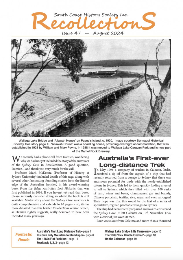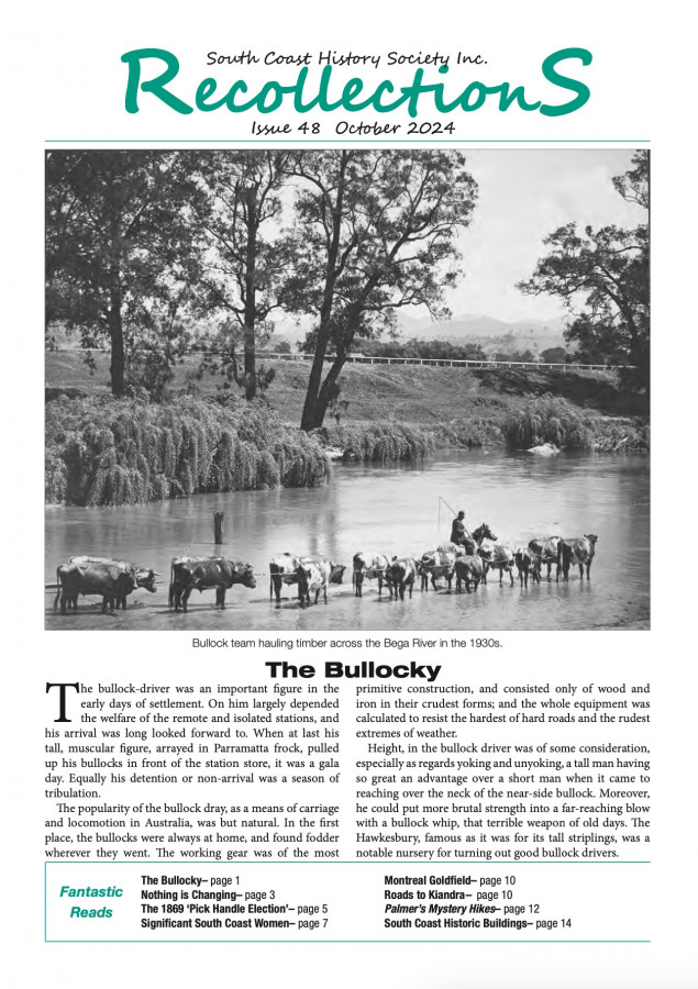 $24 per year helps us defray the postage costs. Call 0448 160 852 or send your name and address and your cheque to South Coast History Society, 90 Whitby Wilson Road, Quaama NSW 2550.